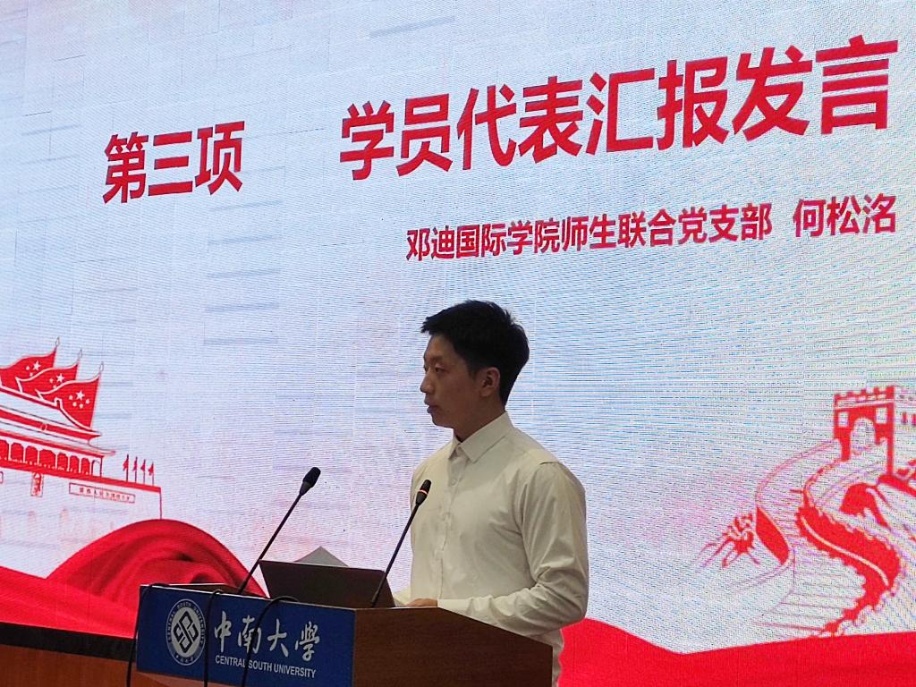 典礼在嘹亮的国歌声中拉开序幕。随后,蒋馨逸对此次发展对象培训作了基本总结。在本期培训班期间,全体学员认真听课,通过个人自学、小组讨论、长沙历史馆现场学习、社会实践,在理论上有收获、在思想上更成熟、在行动上更进步。