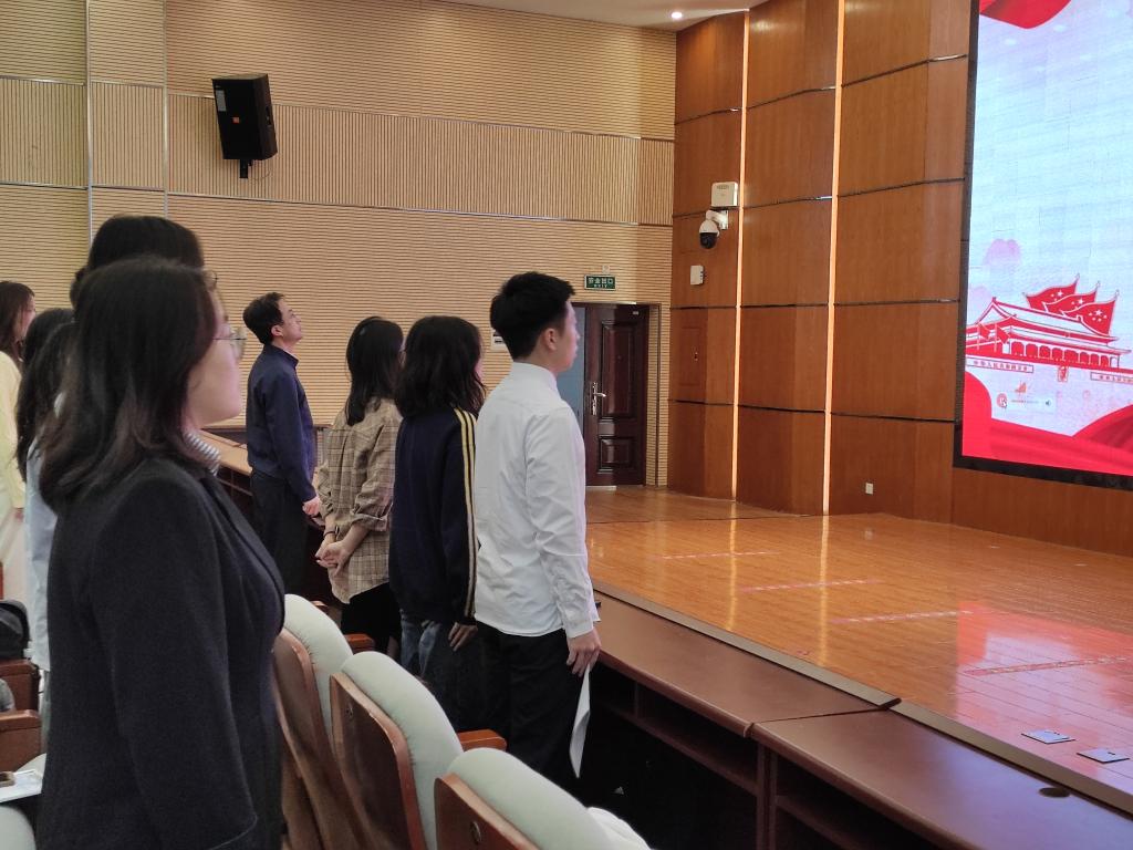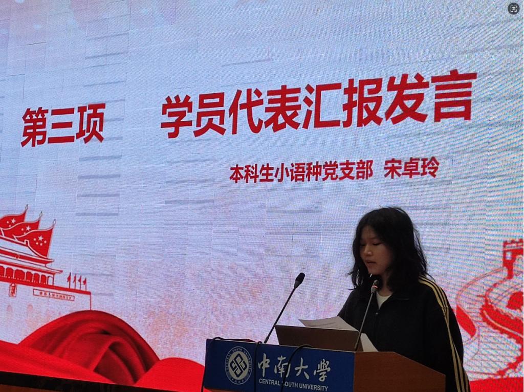 典礼在嘹亮的国歌声中拉开序幕。随后,蒋馨逸对此次发展对象培训作了基本总结。在本期培训班期间,全体学员认真听课,通过个人自学、小组讨论、长沙历史馆现场学习、社会实践,在理论上有收获、在思想上更成熟、在行动上更进步。