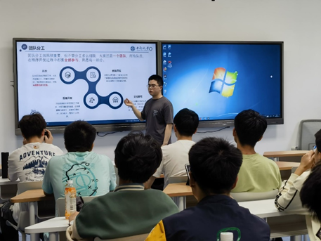 在A座206教室举行学科竞赛分享会。计算机D2201班班导师钟萍及30余名学生代表参加。计算机科学与技术专业本科2019级康嘉绪同学受邀分享在“中国大学生服务外包创新创业大赛”(以下简称“服创比赛”)和“中国大学生计算机设计大赛”的成功经验。