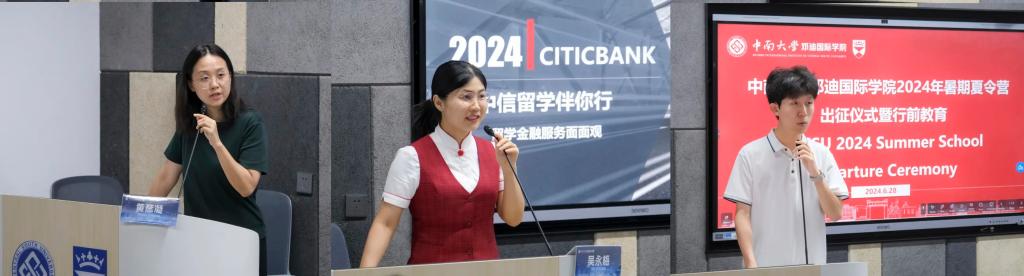 2024年暑期夏令营出征仪式暨行前教育在网络楼635教室举行。学院党总支书记高东波、学生工作部副部长张江华、国际合作与交流处项目办主任黄凝彦、中信银行中南社区支行行长吴永梅受邀出席,全体暑期夏令营学员参加。活动由学院学工办主任王晓宗主持。