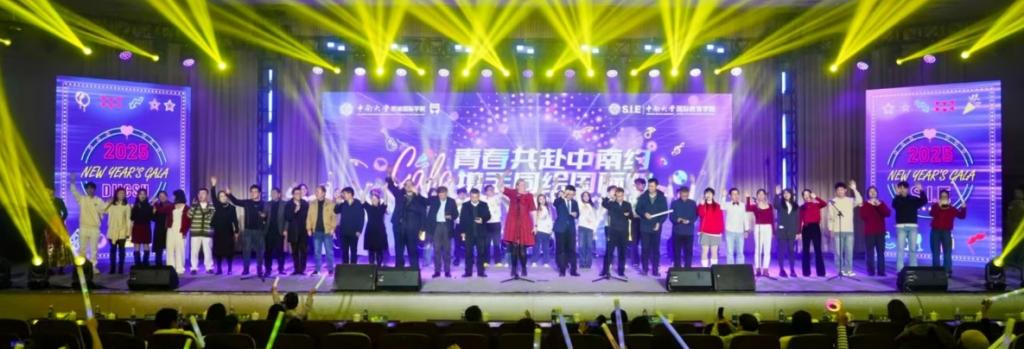 、国际教育学院于中南讲堂联合举办“青春共赴中南约,携手同绘国际梦”2025新年晚会。校领导李景升、何军、黎志宏出席,相关部门领导、两院中外方师生以及部分学生家长共800余人参加晚会。