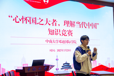 主办的"心怀国之大者,理解当代中国"主题知识竞赛在毓秀楼238报告厅掀起时政讨论热潮。来自12个学院的34支队伍、过百名学子通过知识竞答、红歌竞猜等创新形式,展开了一场别开生面的思政教育竞赛。