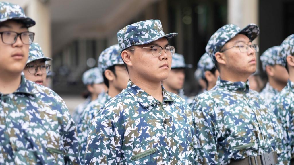 历经三日军训,20分钟的军姿站立对同学们来说已成为一道“开胃菜”。他们身姿挺拔如松,目光坚定望向前方,双手紧贴裤缝,在各排排长、连长与辅导员的细致指导下,展现出愈发饱满的精神面貌。