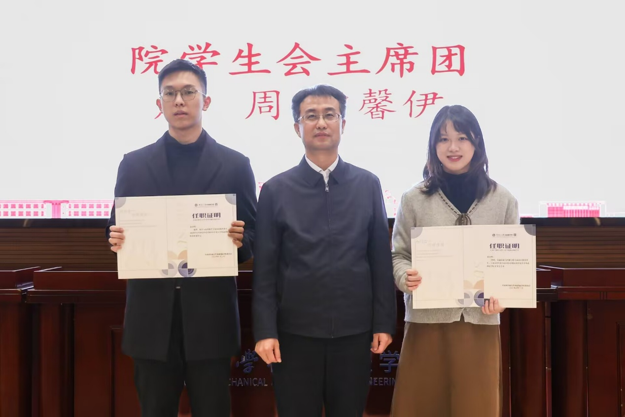 会议第三项议程,高东波书记与各学生组织指导老师为第三届学生工作组织成员颁发任职证书,纪念他们过去一年的努力与贡献,也激励新一届成员接续奋斗、薪火相传。